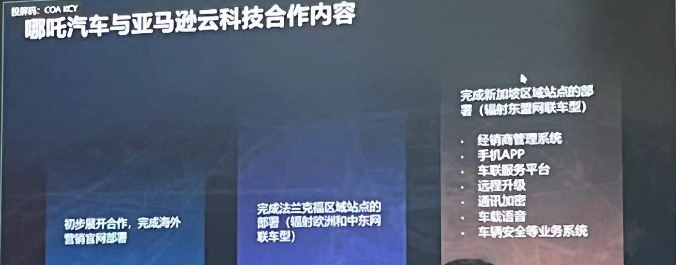 但事实上,哪吒汽车与亚马逊云科技的合作始于2023年。2023年上半年,哪吒汽车在亚马逊云科技的帮助下完成了海外营销官网的部署,下半年完成了法兰克福区域站点的部署,服务欧洲和中东联网车型,2024年初完成了新加坡区域站点部署,服务东盟联网车型。